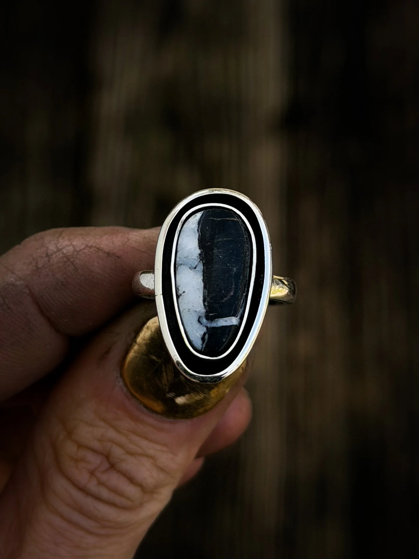 White buffalo set in sterling