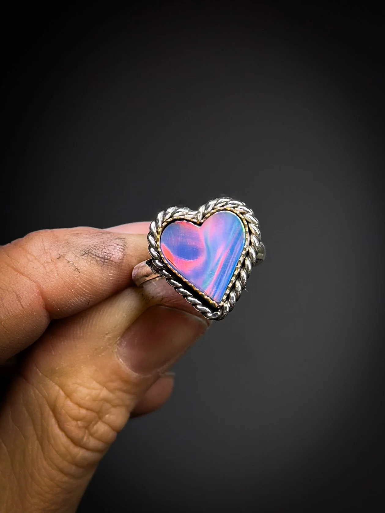 Lavender aurora opal set in sterling