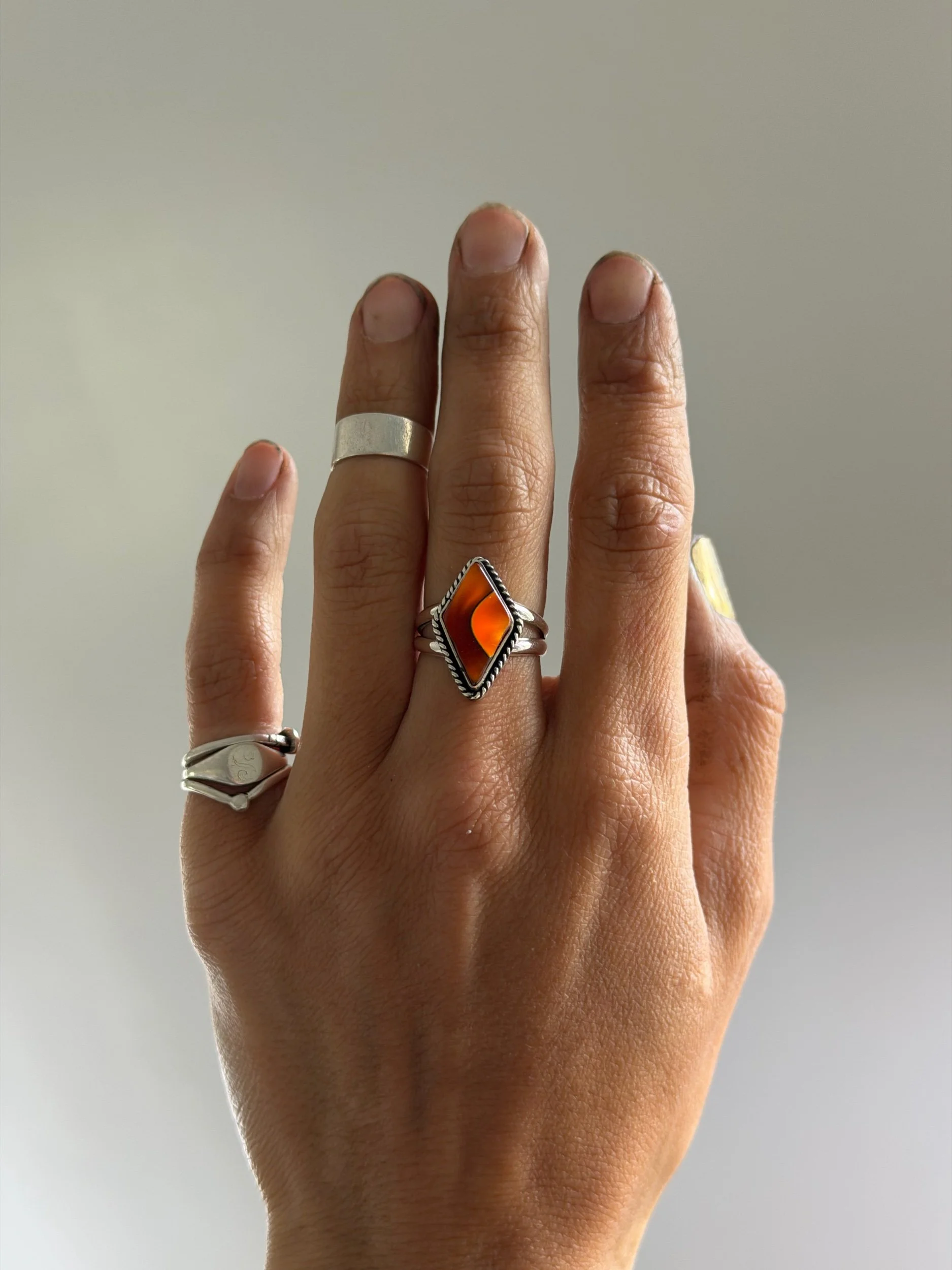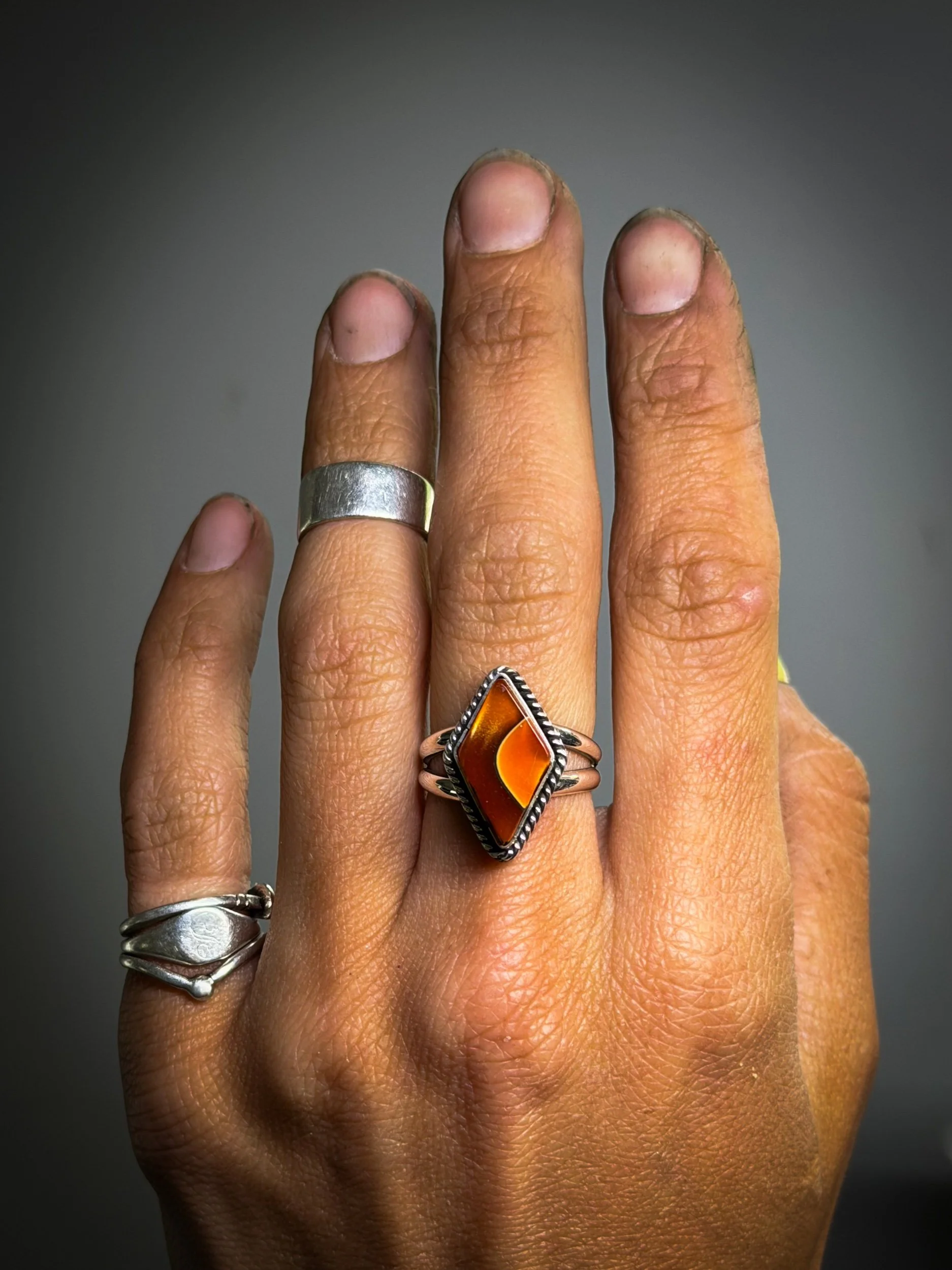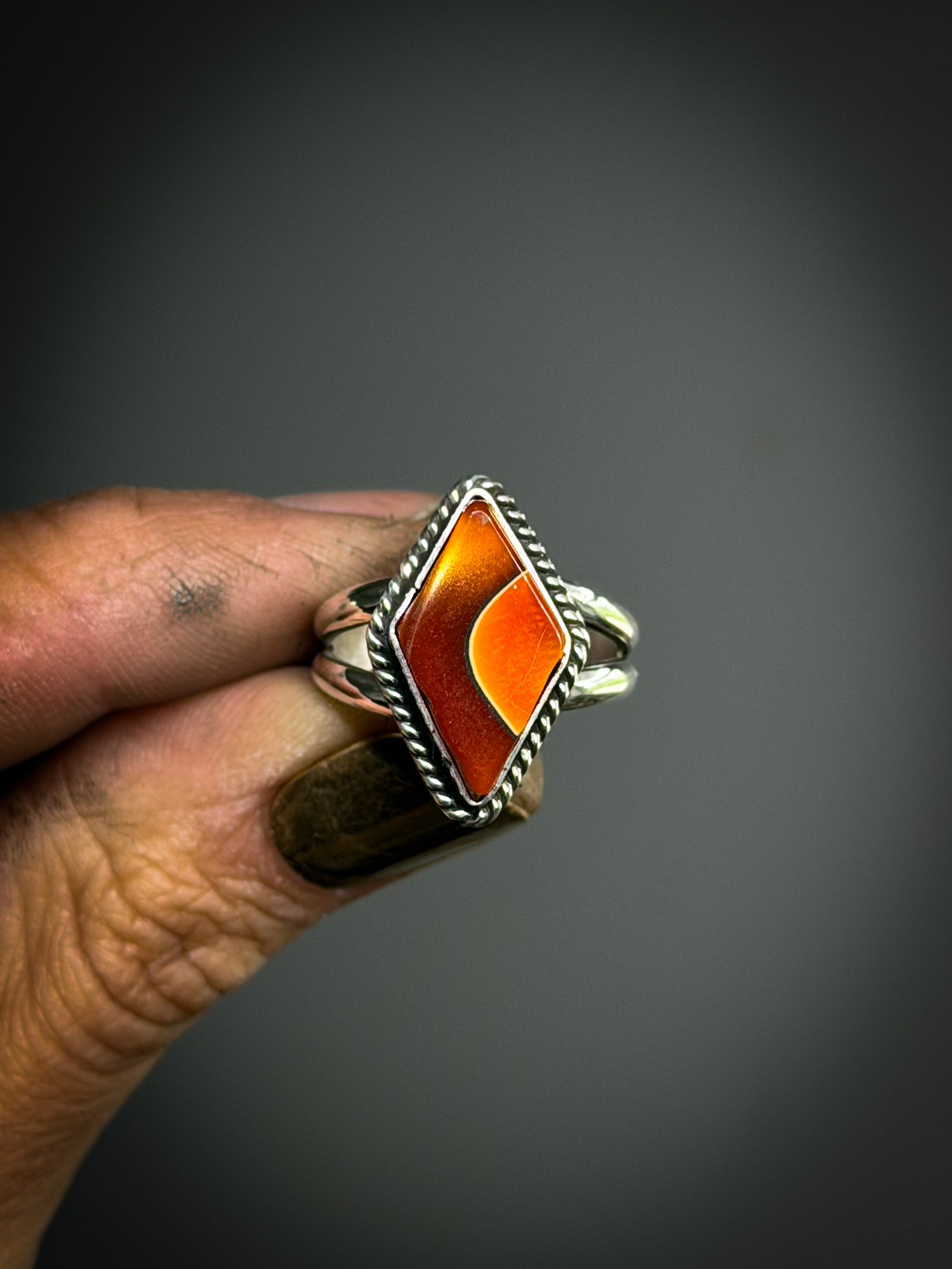 Orange and black alumilite acrylic set in sterling